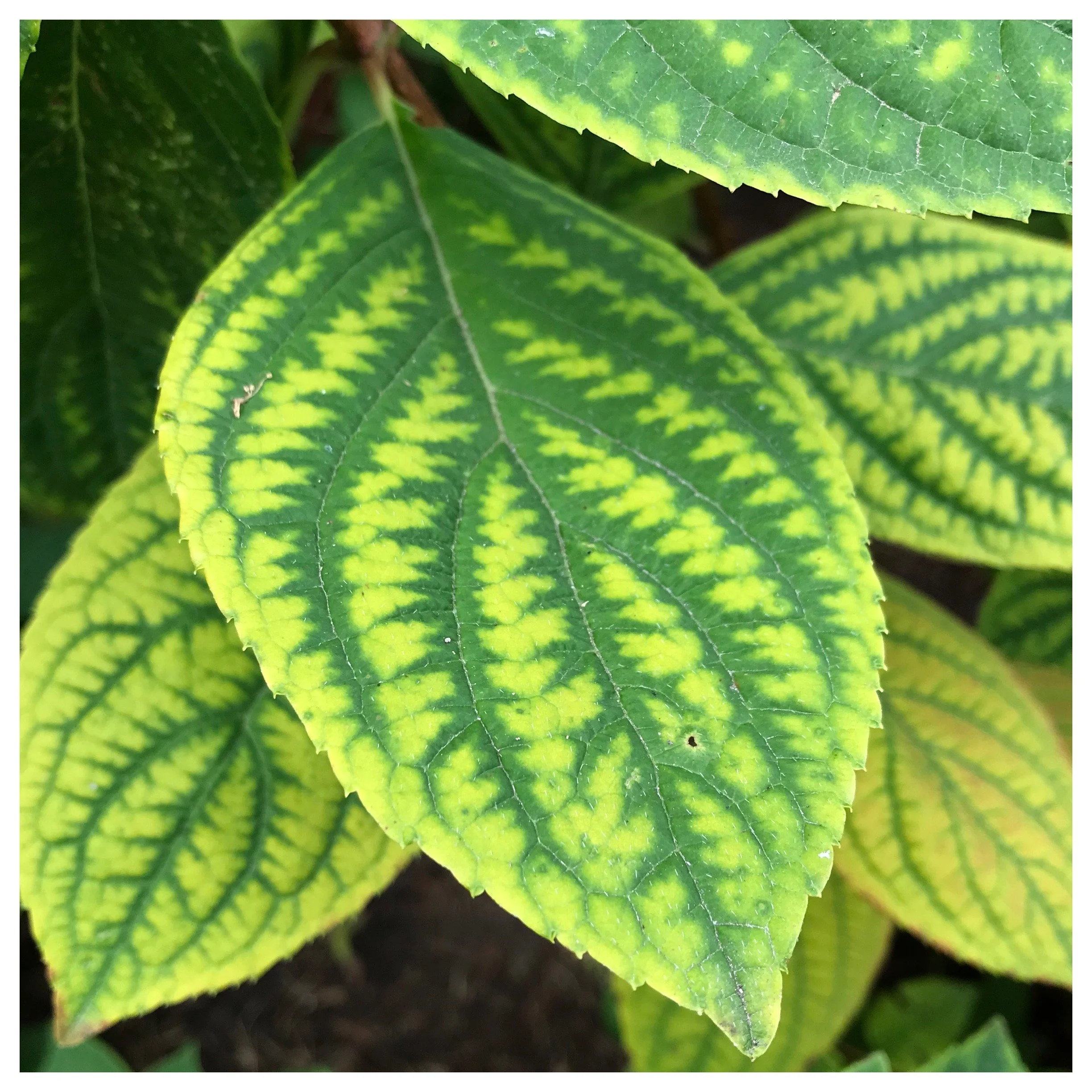 A hydrangea with chlorotic leaves