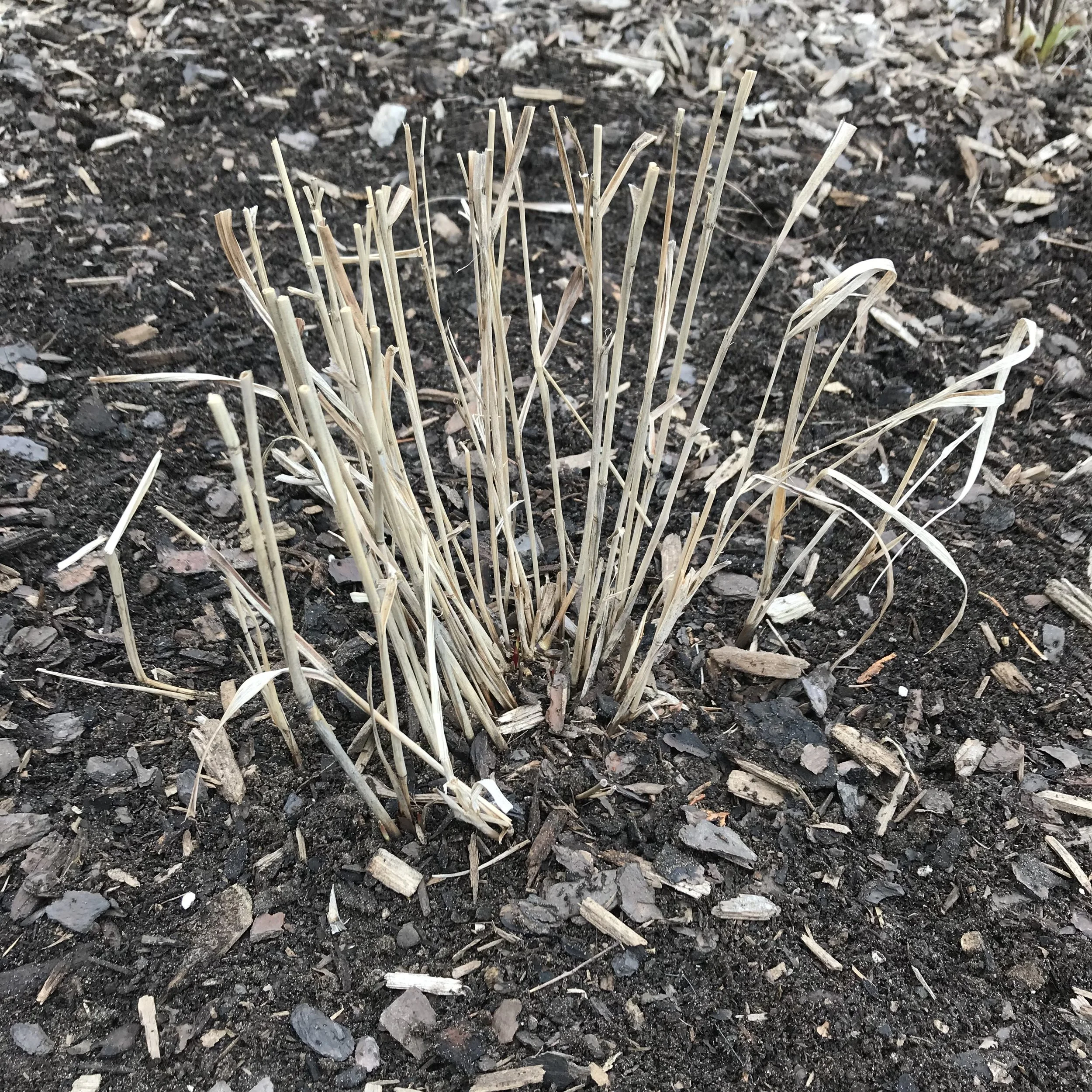 WAIT! Before pulling out ‘dead’ perennials like this grass, take a really close look at the base of the plants…