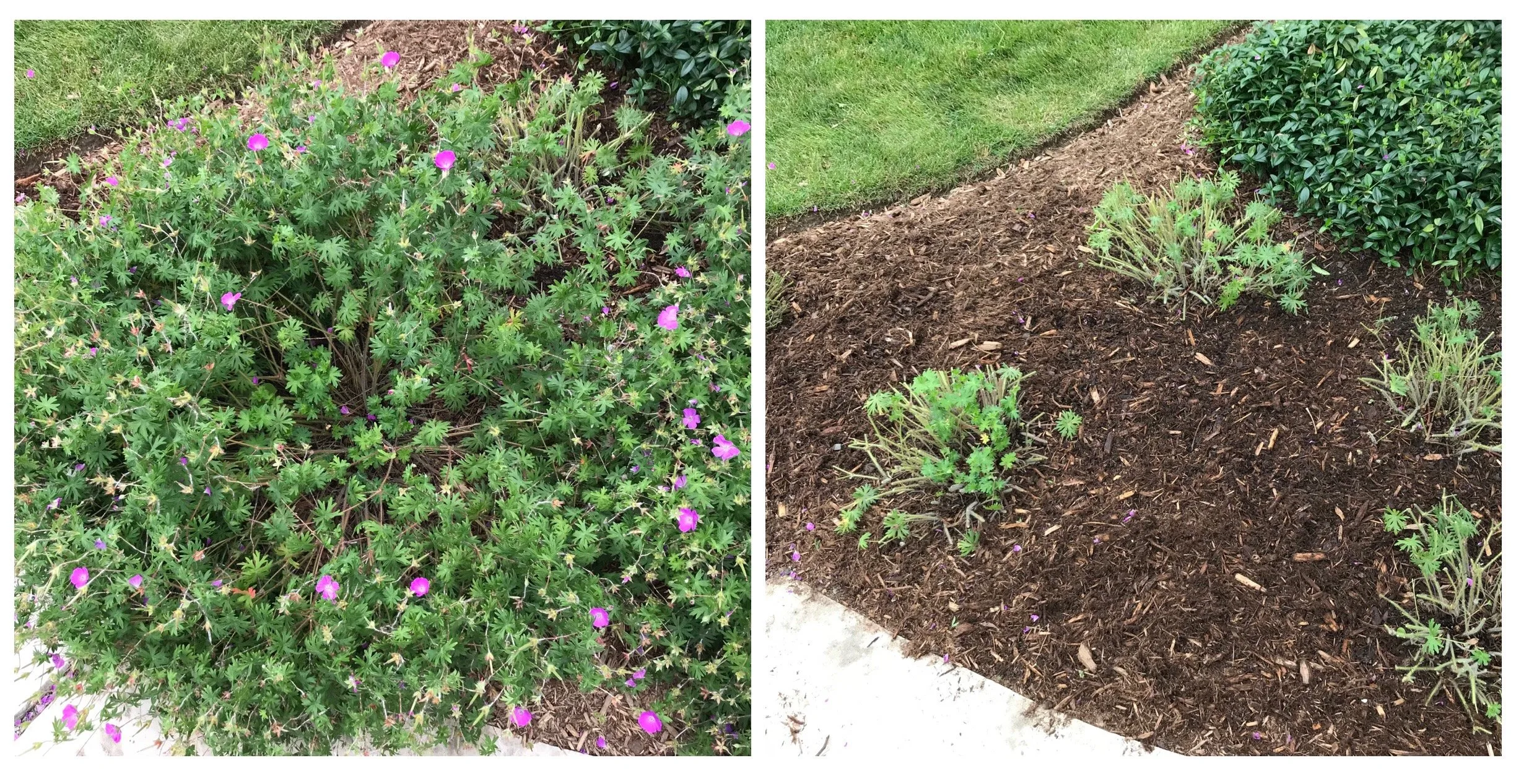 • Cranesbill (Geranium spp).- the ones that get long and sprawling after flowering; spreading/dwarf varieties do not get sheared. If your Geranium is rambling over-top of other perennials, it is eligible to be sheared!